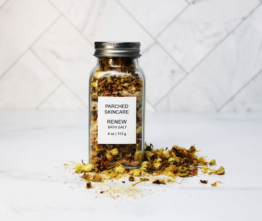 Our Renew Bath Salt is a refreshing botanicals and essential oils enhance any bath to a home spa experience.